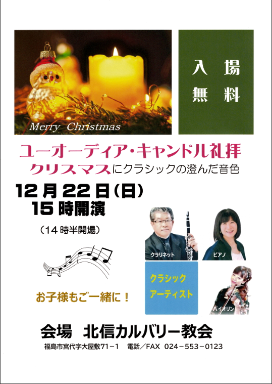 ユーオーディア・キャンドル礼拝を開催いたします。